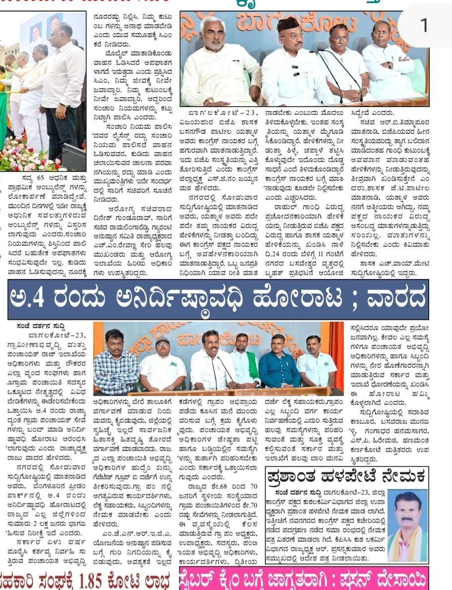 ಗ್ರಾಮೀಣಾಭಿವೃದ್ಧಿ ಮತ್ತು ಪಂಚಾಯತ್ ರಾಜ್ ಇಲಾಖೆಯ ಎಲ್ಲಾ ವೃಂದ ಸಂಘಗಳು ಹಾಗೂ ಗ್ರಾಮ ಪಂಚಾಯತ ಸದಸ್ಯರ ಒಕ್ಕೂಟ, ಬೆಂಗಳೂರು ಇವರ ಸಹಯೋಗದಲ್ಲಿ ಅಕ್ಟೋಬರ್ ೪ರಂದು ಅನಿರ್ದಿಷ್ಟಾವಧಿ ಹೋರಾಟ. ಸ್ಥಳ: ಫ್ರೀಡಂ ಪಾರ್ಕ, ಬೆಂಗಳೂರು.